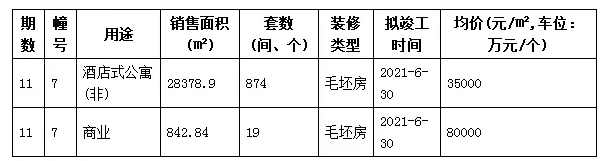 今天,位于江北的华润万象公馆新领了B7号楼酒店式公寓销许,共874套,毛坯交付,户型建筑面积33㎡,销许均价35000元/㎡,毛坯标准,拟竣工2021年6月30日。