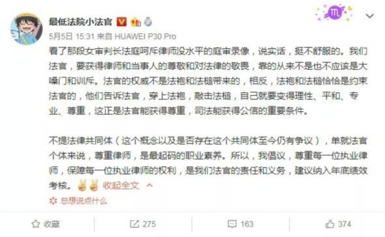 有人觉得无论是法官行业,还是律师行业,最起码的彼此互相尊重是需要的。