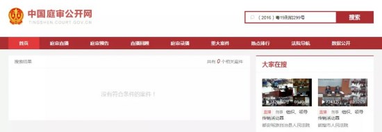 随后记者将案号输入到搜索栏,网站显示为没有符合条件的案件!