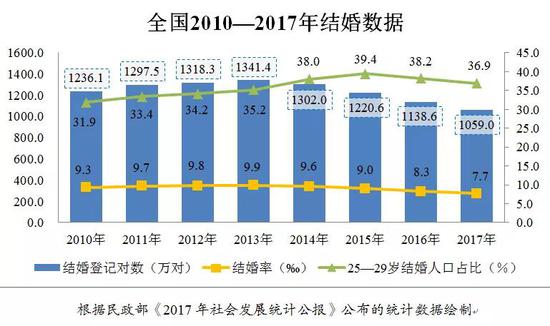 进一步讲,随着高等教育的普及,学历越高在校时间就越长,这不仅推迟了就业平均年龄,也推迟结婚平均年龄。