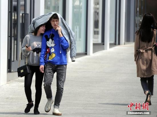资料图:出行市民用衣物遮阳。中新社记者 蒋雪林 摄