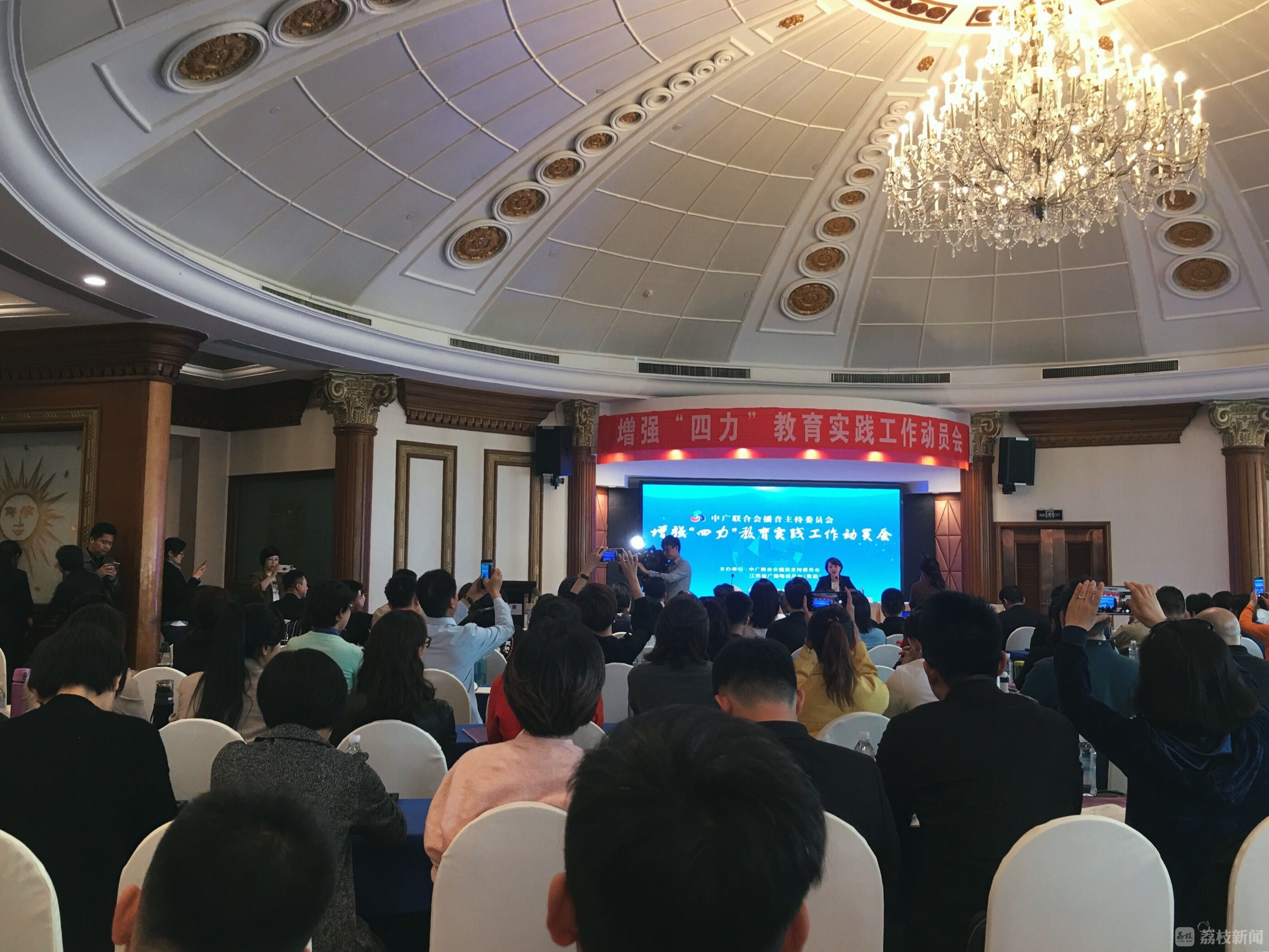 为响应习近平总书记在全国宣传思想工作会议上做出的指示:“不断增强脚力、眼力、脑力、笔力,努力打造一支政治过硬、本领高强、求实创新、能打胜仗的宣传思想工作队伍。”中广联合会播音主持委员会和江苏广电总台共同举办的“增强‘四力’教育实践工作动员会议”在南京召开。