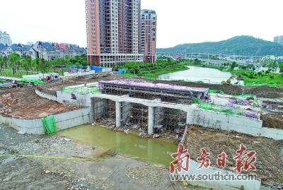 金湾区加固、重建一批水利工程,提升抗灾能力。图为加紧建设的三灶湾大堤1号闸。关铭荣 摄