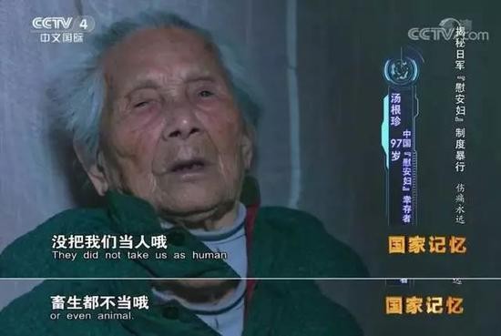 据侵华日军南京大屠杀遇难同胞纪念馆官方微博消息,日军“慰安妇”制度受害者汤根珍老人于2019年5月9日凌晨3:00许,在家中与世长辞,享年99岁。