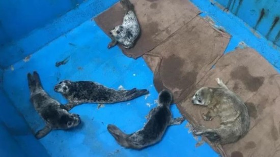 新京报此前报道,2月11日,大连长兴岛警方查获一起斑海豹盗猎案件。100头被盗的斑海豹幼崽,有29只幼崽受惊而死,被安置之后又死亡10头,存活61头。幸存斑海豹幼崽被送往辽宁省海洋水产科学研究院、老虎滩极地馆、圣亚海洋世界等机构进行救助。4月11日,首批24头幸存斑海豹在渤海海域放生。
