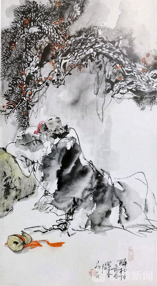 现场观看这幅国画作品,线条或老辣苍茫、或秀丽劲挺,可见数十年修炼的书法功底,方才形成雄伟清秀的独特风格!
