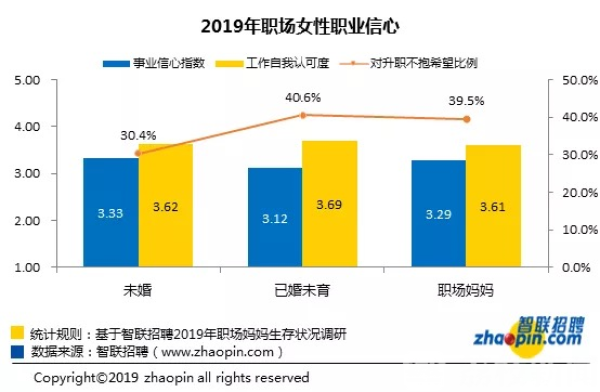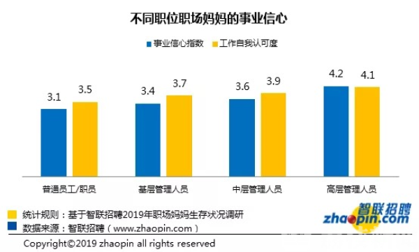 有了孩子以后,重心就变了,是不少人对职业女性的直观判断。但本次调研结果显示,相对于未婚女性及已婚未育女性,职场妈妈事业信心指数为3.29,略高于职场女性整体的事业信心指数。而事业信心指数最低的是已婚未育女性,仅为3.12。