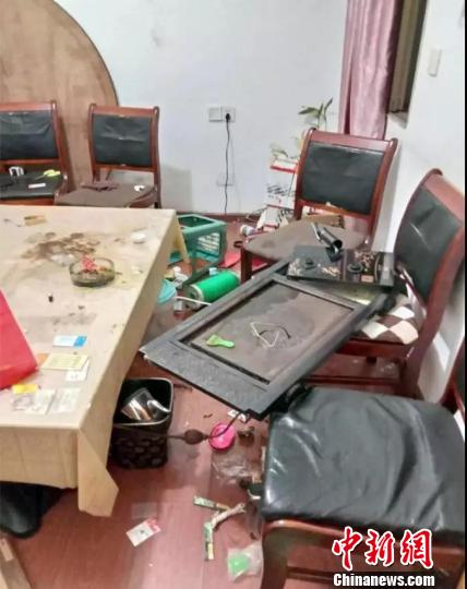 图为:旅馆茶几被鬣羚砸碎。三门县委宣传部提供