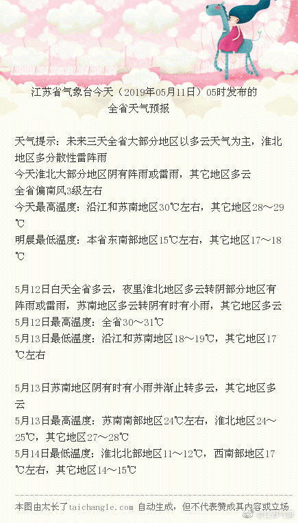 未来三天全省大部分地区以多云天气为主,淮北地区多分散性雷阵雨