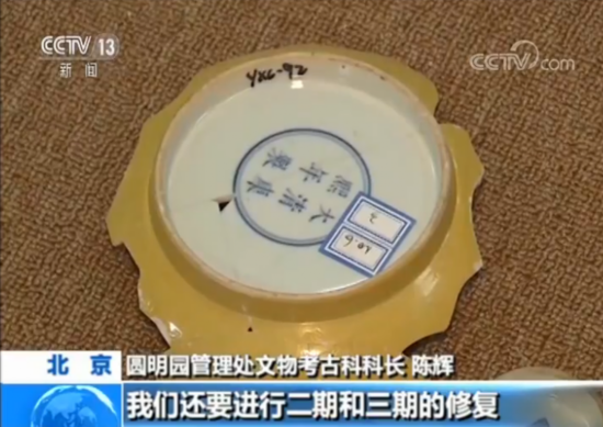 圆明园管理处文物考古科科长 陈辉:在这个一期修复完成之后,我们还要进行二期和三期的修复,争取把我们出土的这些众多的瓷片一件一件全部修复起来。