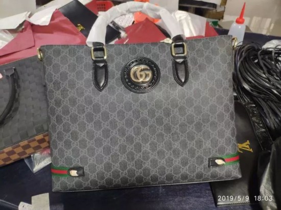 执法人员在一制假工厂内查获的高仿GUCCI包。广州白云区委宣传部供图。