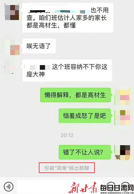 “我就想着要订购二百多套衣服,孩子不懂上面的内容,可是未免不会好奇,这种有侮辱性的文字影响了孩子怎么办。”王先生说,起初还和老师好好地沟通,老师表示王先生可以不订购,但王先生考虑到不只自家孩子会受到影响,据理力争。最后该老师提出让王先生的孩子申请转班,并把王先生踢出了群聊,王先生想不通,明明是好心,怎么却是这种结果,毕竟衣服还没有订购,改换一下应该没问题。“我估计就是老师觉得我多事了,越说态度就越差了。”王先生越想越生气,于是就发了这条朋友圈。