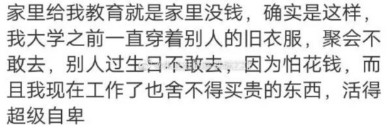 有网友表示从小不知道家里有多少钱,养成了别人眼中“抠门”的习惯,甚至有些自卑。