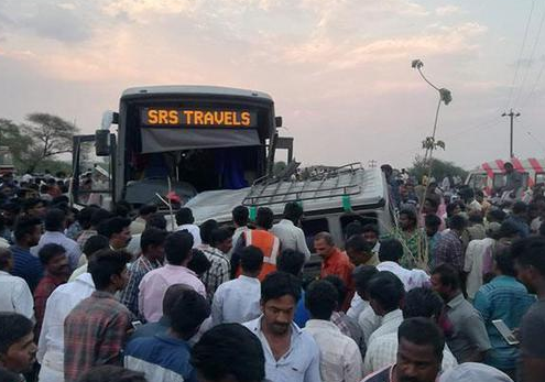 印度一辆汽车为避让摩托车与巴士相撞 致15死6伤