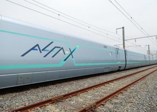 JR东日本铁路公司首次展示的“ALFA—X”10辆编组车辆整体