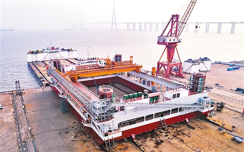 振华重工为中交一航局研制建造的自升平台式碎石整平船“一航津平2”日前在江苏南通下水,投产后将进一步巩固我国在海底隧道基础施工领域的世界领先地位。“一航津平2”因其铺设作业的高效率和自动化,被形象地称为深水碎石铺设的“3D打印机”。