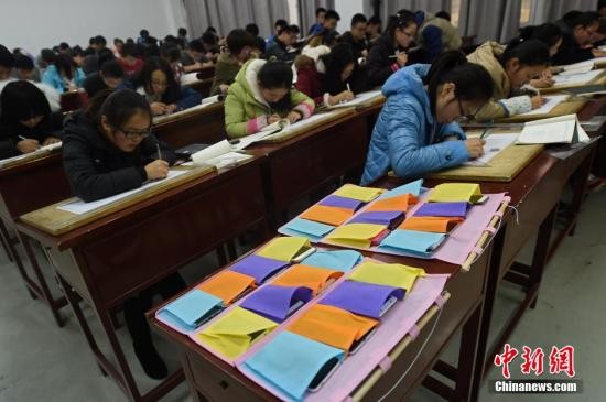 资料图:某大学教室内,上课学生将各自的手机放入前排的收纳袋中,集中精力听课学习。武俊杰 摄
