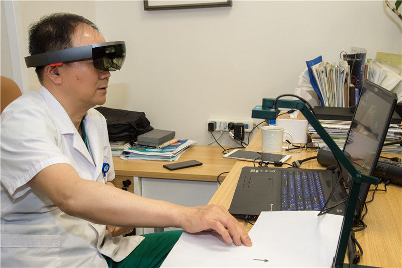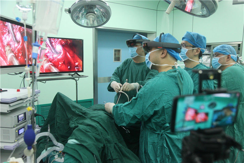 5月13日下午,位于江苏省人民医院本部的胸外科陈亮主任,通过移动5G网络实时传送的高清视频画面,远程指导手术约2个小时,与江苏省人民医院浦口分院的朱全主任一起,成功为浦口分院的患者谷女士完成了左上肺联合亚段切除术。这也是全国首例5G+MR(混合现实)远程肺部手术。