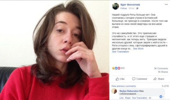 “这不是自杀,而是一场悲惨的事故”。俄罗斯时尚杂志女编辑玛格丽特·维洛娃12日在家中拍照时不慎从8楼跌落,这一天,时间的摆针定格在这位年轻姑娘的25岁。一天后,维洛娃的朋友伊戈尔·斯科沃罗特在脸书发布长文,记述了这一悲痛的故事。