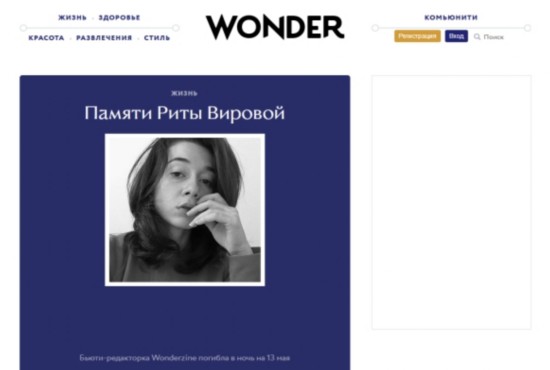 这名遭受不幸的25岁的年轻姑娘是俄罗斯时尚杂志《Wonderzine》的编辑,悲剧发生后,《Wonderzine》官网发布一段文字,缅怀维洛娃:"我们的朋友和心爱的同事丽特·维罗娃昨晚去世了。她才华横溢,非常热爱生活,了解关于美的一切,但命运却和她开玩笑。她离开了我们,这是不可想象的悲伤"。