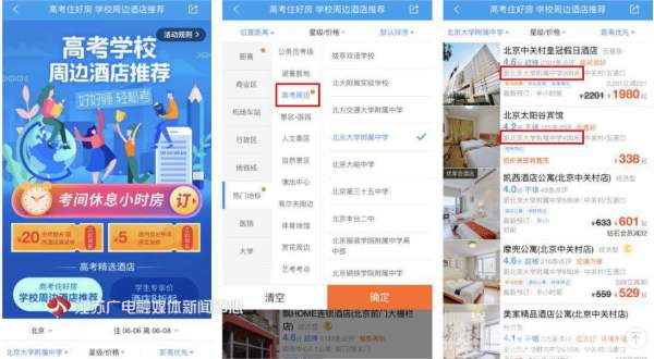 距离成为高考房预订决定因素