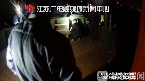 当晚8点左右,水上派出所民警与水政执法人员巡逻至长江镇江段99号浮水域时发现,一艘可疑货船停泊在该水域中。据镇江市公安局水上分局大港水上派出所民警柏杨介绍:“这条船尾部有四个排气管,其中有两个排气管是比较新的,一般这种货船,只要两个排气管就够了,还有这个船的船身周围没有船号,没有任何标记,虽然说这条船是空载船,但它还是盖了一层顶棚,按照我们的经验来看,这应该不是一条正常的货船。”