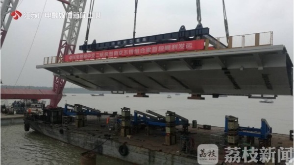 中塔钢混组合梁0#块吊装完成后,接下来五桥全桥120块钢混组合梁的吊装作业也将陆续展开,这也意味着南京长江五桥全面进入桥面施工阶段。