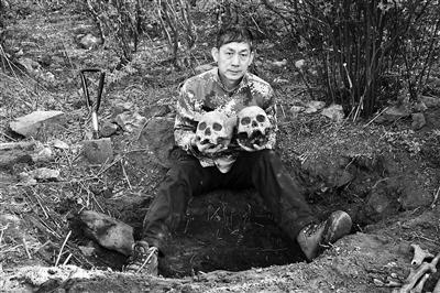 5月7日,杨国庆在黄楼院山地找到两颗头骨,死者疑似日本士兵