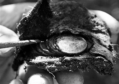 第四个证据是日本钱币。在遗骨中,杨国庆还发现一个糟朽的钱夹,夹子里有10枚日本硬币,多数锈蚀严重,呈青绿色,字迹漫漶。其中一枚硬币显示“大日本国、昭和八年”(1933年),另一面刻“十钱”字样。除昭和年号外,还发现有明治(1868年-1912年)、大正(1912年-1926年)年号的硬币。