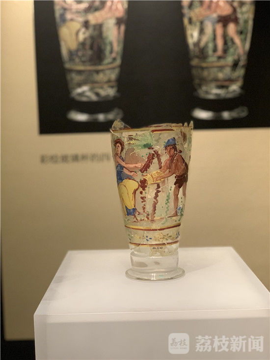 公元1世纪的彩绘玻璃杯 ,不得不承认记者的水杯还不如它好看。杯子上两位农民在采摘的是椰枣哦~