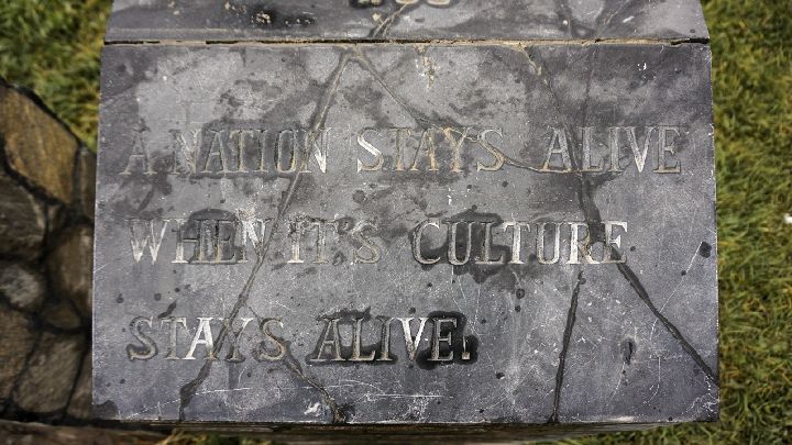 阿富汗国家博物馆入口建筑造型的展板上写着这样两行英文:”A nation stays alive when it's culture stays alive.”(文化在,则国家存)。