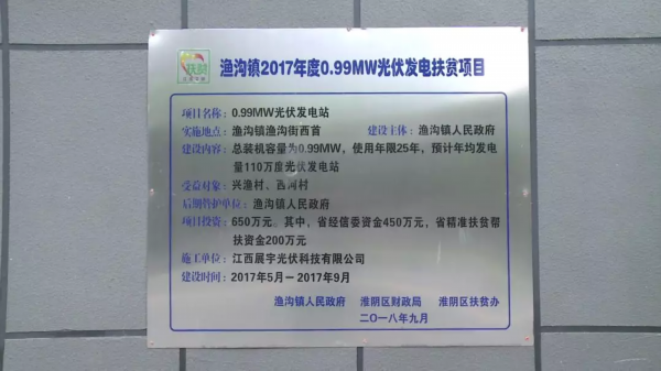 2017年,省、市、区、镇四级既“输血”又“造血”。兴渔村在上级部门的支持下,建厂房得租金,当年村集体收入约18万,实现脱贫出列。同年,通过省委驻淮帮扶工作队的牵线搭桥,新建了0.5兆瓦的村级光伏发电工程,为村集体经济持续“输血”。