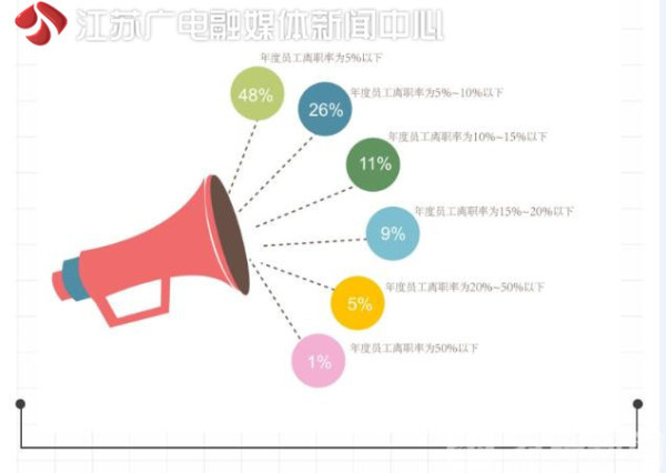 年度员工离职率在5%以下的企业占48%; 5%-10%的企业占26%;10%-15%的企业占11%;15%-20%的企业占9%;20%-50%的企业占5%;50%及以上的企业占1%。