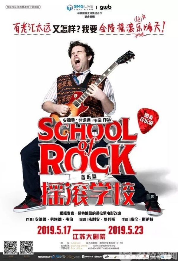 音乐剧《摇滚学校》由安德鲁·劳埃德·韦伯创作,是一个关于音乐如何改变孩子们生活的故事。由扮演男主角杜威的布伦特·希尔和12名个性迥异的孩子共同演出,他们连唱带跳、现场演奏吉他、贝斯、鼓和键盘等多种乐器,以过硬的表演实力上演了一场摇滚Live秀。据悉,2015年,《摇滚学校》在百老汇冬日花园剧院首演时,一经亮相就掀起观看热潮,到随后的伦敦、墨尔本,所到之处收获赞誉和掌声无数。而在中国巡演期间,经由上海、北京、广州、厦门四地巡演的社交传播和口碑发酵,这部新晋话题音乐剧早已在南京未演先火。