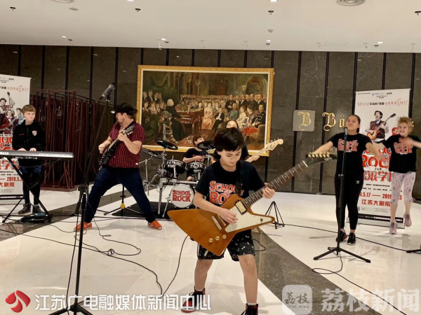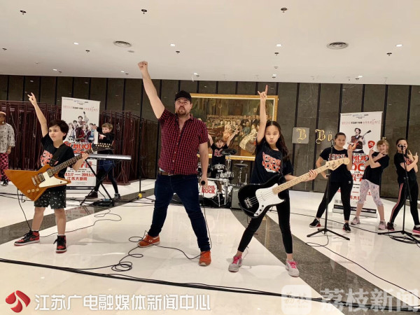 5月16日下午,在江苏大剧院,举行了一场别开生面的见面会!上海文广演艺(集团)有限公司产业中心独立制片人糜小草女士、《摇滚学校》外方巡演导演Leah、中方巡演制作人Joy、男主角的扮演者布伦特·希尔(Brent Hill)以及7位可爱的小演员共同出席媒体见面活动,大小演员们还现场演唱了两首经典剧目《老师的乖宝宝》(Teachers’ Pet)和《大声来呐喊》(Stick It To The Man),将活动气氛瞬间“点燃”,让特邀的南京媒体朋友们及南京小朋友们,提前感受到School of Rock的魅力!