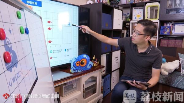 在南京仙林一个小区,记者见到了正在上课的"小蓝鲸"机器人队,三个小女生、一个小男生正在讨论如何制定机器人海洋科考方案。“我们的目标就是要找到章鱼宝宝,还要把它的宝宝送回到安全的地方,并且要考虑怎么让章鱼吃东西、避开洋流。”队长马亦轩说。