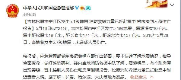 【吉林松原市宁江区发生5.1级地震 】