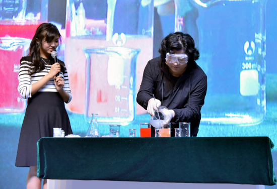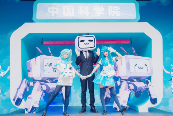 与硬核科普活动相映成趣的,是B站UP主带来的融合二次元色彩与科技感的表演。为纪念元素周期表诞生150周年,科技区UP主“真·凤舞九天”现场上演名为“元素奇迹”的化学实验秀。虚拟主播也在严肃的科学技术与梦幻的二次元文化间架设了沟通桥梁。大屏幕上,B站的虚拟主播“兰若_Re”和“Siva_小虾鱼”与观众实时对话互动,虚拟偶像洛天3D全息投影“亲临现场 ”。