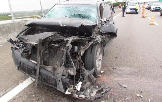下午,刘某驾驶一辆粤XR××29号丰田汉兰达SUV,从江门崖南上了西部沿海高速,载着两名同事由西往东方向回佛山。▼