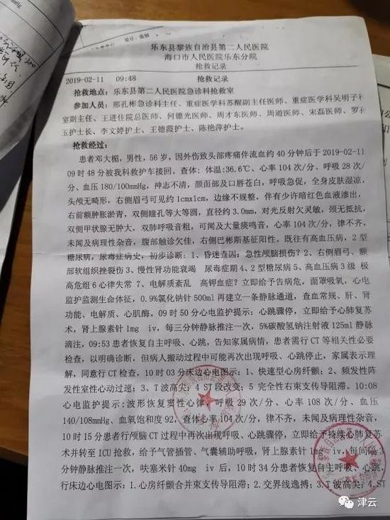 随后,家人打了120急救电话,将邓大楣送走进行急救。在送至医院过程中和到医院后的几小时内,邓大楣数次心跳和呼吸骤停,抢救人员多次进行抢救并使其暂时恢复心跳,但最终邓大楣还是不治身亡。