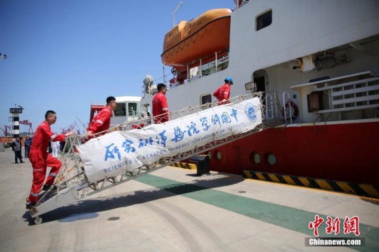 图为科考队员登上“科学”号准备起航。 中新社记者 胡耀杰 摄