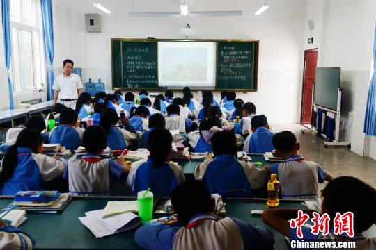图为营盘村神舟小学的学生在有电子白板和新桌椅的教室内上课。张伟明 摄