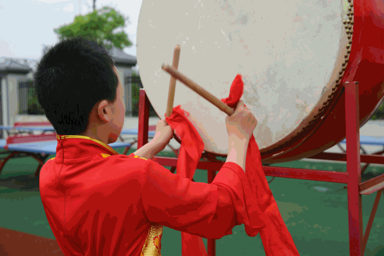 鼓文化在淮海地区源远流长,它深植在淮海大地,有着广泛的群众基础,影响着百姓的生产生活。中华武术则刚柔并济,操练起来能提振士气,鼓舞精神,展现中华民族的少年风貌。