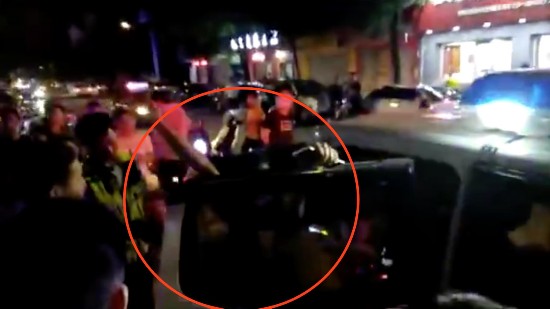 涉事男子打开车门,向站在其身前两名身着制式服装的男子强调,自己不会跑。 现场视频截图