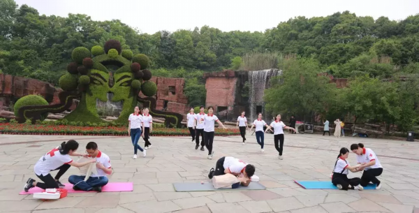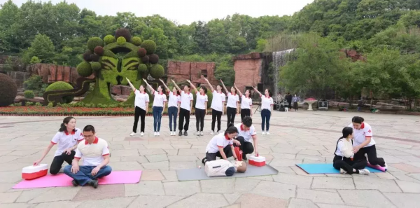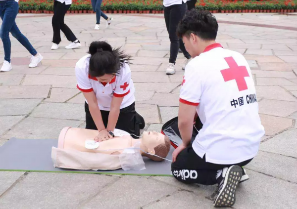 “急救快闪”活动后,红十字会的志愿者们还通过歌舞表演的方式,为现场的游客演示了“心肺复苏术”、“海姆立克急救法”、“止血包扎”等实用急救技能。