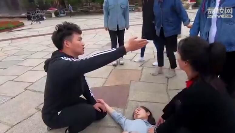 这是宜兴市红十字会精心策划的一次“急救快闪”活动。“晕倒者”、“施救者”、“120医务人员”都是安排好的“演员”。