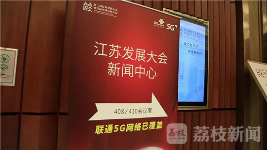 (荔枝新闻讯 记者/王婕 杨艺 通讯员/马晓燕 )5月20日,第二届江苏发展大会暨首届全球苏商大会在江苏大剧院圆满举行,在大会的新闻中心,一句“联通5G网络已覆盖”的简单温馨提示让不少记者吃了颗定心丸。