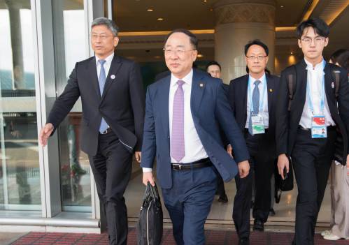 图为韩国副总理兼企划财政部长官洪楠基(左二)。新华社