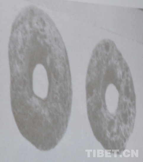 此外,在卡若遗址还发现一件陶器内底残存“布纹”痕迹。这说明“当时的藏族先民已经懂得纺线和手工编织技术。他们使用兽毛和植物纤维纺布,陶纺轮已成纺织普遍使用的工具。”