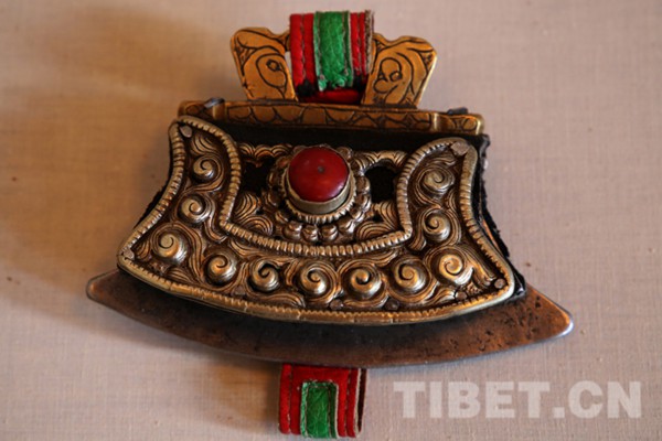 在装饰品的选择上,也显示出生产、生活的特点。藏族服饰中挂饰的主要类型有藏刀、针线盒、火镰、钱包、子弹夹、奶钩等,这些生产、生活中的工具以华丽的装饰品的形式出现,集实用性和装饰性为一体。无处不在的美,体现了藏族人民对生活的热爱和对美的追求。